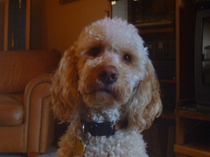 Lucy は大きなプードルで、とても元気なわんこでした。毎朝私が階段から降りてくると、おもちゃを持って突進してきました。眠くなると私の足の上に頭を乗せて寝てきたりして、本当にかわいかったです。 |