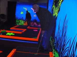 この日は私が起きるの遅くて、お昼くらいから行動開始でした。テニスをする予定だったのですが、天気が悪かったのでモールの中にあるミニチュアゴルフをしました。意外と難しく、私は下手すぎて Kelly と David から笑われました。