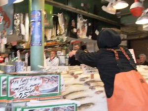 | スペースニードルの前で | 生の Flying Fish | イチローになりきってます |