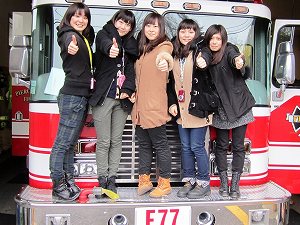 午前は消防署を訪問しました。防火服を着たり消防車に乗ったりしました。アメリカの消防署は日本と違うところがあるので、びっくりしました。友達は消防ホースを持って実際に放水していました。雨だったのは残念でしたが、楽しかったです。午後はスタディーセンターに戻ってお金の支払い方を勉強しました。お金の支払い方に慣れるまで大変でした。