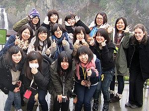 その後、滝を見に行きましたが、雨が降っていたので少し肌寒かったです。滝はキレイで、他にも観光客がいました。次にアウトレットモールに行き、そこには飲食店や服のお店がありました。ここでは、チームごとで行動しました。私たちのチームは焼きそばを食べ、注文するときは英語なので緊張しましたが、無事に伝わりました。その後は服を見たり雑貨を見たりして、観光を楽しみました。