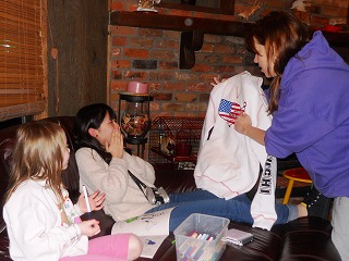 帰ってから、とても素敵なことがありました。いつものように Mayleen とリビングで遊んでいたら、Mom が Joseph と Dad をリビングに呼びました。すると、Dad が私に「カメラ貸して」と言いました。不思議に思いながらも貸すと、みんなが私の名前と Hoffman ファミリーの名前が入ったパーカーをプレゼントしてくれました。パーカーは、iPod が入るポケットまで付いていました。私が嬉しくて号泣したら、みんながハグしてくれました。