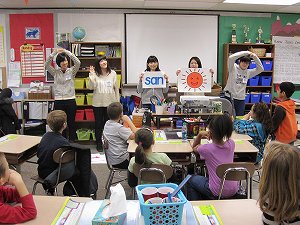この日は小学校を訪問しました。日本の数字の数え方をプレゼンテーションしたり、授業を見学したりしました。子どもたちはとってもパワフルで、かわいかったです。学習意欲も旺盛で、積極的に質問しているのに驚きました。休み時間にはボールゲームや鬼ごっこをしましたが、普段運動しないので、すぐに疲れてクタクタになってしまいました。昼食も子どもたちと教室で一緒に食べました。アメリカの子供たちのお弁当は、サンドウィッチやジュース、お菓子、果物などがランチボックスに入っていました。担任の先生は、好きなものしか入っていないので、栄養面の偏りと好き嫌いがある子供が多いことが心配だと言っていました。