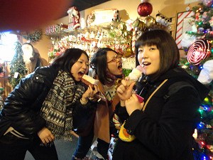 の話すことは理解できても、発言はなかなかできなかったので、悔しかったです。簡単な会話表現を教えてもらい、みんなですぐに練習したりもしました。昼食後は、教会周辺の散策をしました。いたるところにスターバックスコーヒーやマクドナルドがあるのはもちろん、日本料理店もあったので驚きました。
