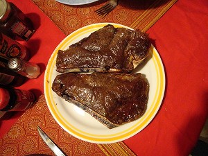 家ではおなじみらしい、大きなステーキを食べました。レアだったのですが、柔らかくてとてもおいしかったです。