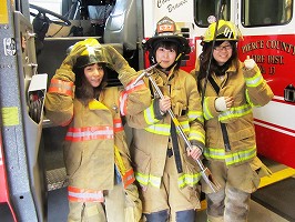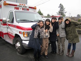 午前に消防署を訪問をしました。日本で事前に考えておいた質問をして、日本とアメリカの消防組織の違いを知りました。たくさん話を聞いた後、実際に防火服を着させてもらいました。防火服はとても重く、うまく動くことができませんでした。とても貴重な体験でみんな興奮していました。消防士のみなさんはとても親切で、放水などのいろいろな体験をさせてくれました。午後はスタディセンターに戻り、どんな話を聞いたかみんなで言い合いました。