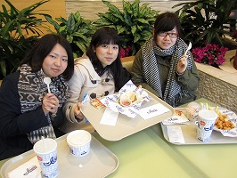 夜は、Debbie の新しいケータイを買うためにケータイショップに行きました。ケータイを見ていると Bill のお母さんが発作で倒れたという連絡が入り、病院に行きました。病院に着くと、みんな集まっていました。みんなが深刻な顔をして話しているのですが、聞き取ることができずとても不安になりました。Debbie が野中先生に電話をすると言い出したので、もしかしたらもうホームステイができないのかと思い泣いてしまいました。でも、そう思っていたのは私だけだったらしく、しばらくしてからみんなはそれぞれの家に帰っていったので、そこまで深刻な問題ではなかったようです。とても安心しました。