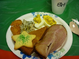 スタディセンターでいろいろなアメリカンホリデーを体験しました。前日、Debbie に大量のプラスチックエッグとお菓子を渡され、2人でエッグの中にお菓子を詰めました。そのエッグを使ってイースターの体験をしました。野中先生がいろいろな場所に隠したエッグを、みんなで一生懸命探しました。みんながあまりにも真剣に探しているので、面白かったです。みんなで仮装をしてハロウィンの体験もしました。みんながいろいろな仮装をしていて大量に写真を撮り合いました。教会の職員の方に"Trick or Treat!"と言ったら、たくさんお菓子をくれました。お昼はそれぞれの家から持ってきたホリデー料理を食べました。アメリカのクリスマスやサンクスギビングの雰囲気を味わうことができました。