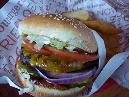 Debbie と一緒に近くのショッピングモールに行きました。駐車場に到着すると Nicole と四女のHaley が来ていて、4人で買い物をしました。アメリカの服はすごく安くて、1枚10ドルという服もありました。アメリカ人は現金をあまり持たないらしく、3人ともカードで服を買っていました。お昼はハンバーガーの専門店に行きました。メニューが読めなく て、Debbie に助けてもらいました。運ばれてきたハンバーガーはとても大きく驚きました。大きすぎて、持って食べるのがやっとでした。結局、全部は食べ切れず、家に持ち帰りました。家に帰ると、Peyton が家に遊びにきていたので、おもちゃを使って一緒に遊びました。