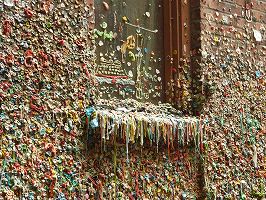お昼を食べ終わった後、シアトルのダウンタウンに行きました。この日は Beth も一緒に行きました。初めてのダウンタウンにすごくワクワクしました。ダウンタウンに入るとたくさんの高層ビルに圧倒され、しばらく唖然としました。まずシアトル博物館に行きました。日本の着物や居間なども飾られてあり、とても驚きました。次にパイクプレイスマーケットという市場に行きました。Bill に面白いところに連れて行ってあげると言われ、着いていくと、大量のガムが壁についているところがありました。観光名所らしく、たくさんの観光客が自分の噛んでいるガムを壁にくっつけていました。