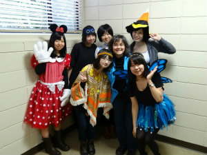 アメリカの祝日の話や日本の祝日の話をしました。コスチュームを着て、ホストファミリーが作ってくれたサンクスギビングデーの料理を食べたりしました。おいしかったです。その後にターゲットに行きました。買い物が終わり、スタディーセンターに帰ってアップルパイを食べました。