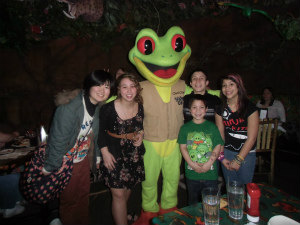 午前は教会に行きました。その後はサウスセンターという大きなモールに行きました。お昼ご飯にモール内にあるジャングルみたいなレストラン「レインフォレスト・カフェ」へ行くと、中はディズニーランドのアトラクションみたいでびっくりしました。