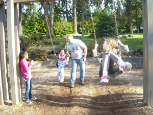 にある公園に行きました。湖が近くにあり、とてもきれいな公園でした。公園ではブランコに乗って遊びました。