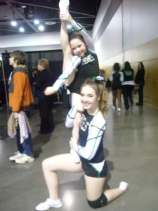 のチアのコンぺティションでした。Mayleen は朝早くに起きて、Mom にお化粧と髪の毛のセットをしてもらっていて、とてもかわいかったです。マクドナルドで朝ご飯をテイクアウトして車の中で食べました。タコマにあるコンベンションセンターに行くと、たくさんのチアのチームが集まっていました。Mayleen