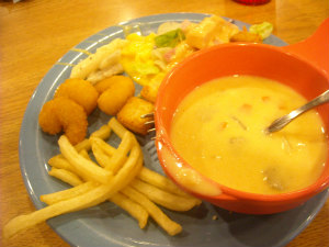 も一緒に Buffet に行きました。私が食べ物を取りに行くたび Mayleen がついて来てくれ、お皿に盛ってくれました。