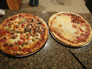 の手作りピザでした。大きくて、とってもおいしかったです。アメリカで食べたものの中で一番おいしかったかもしれません。