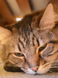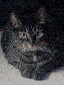 いつもどっしりとかまえていて、イスの下がお気に入りでした。最初は近づくことを許してくれませんでしたが、3週間目には近づいてきてくれるようになりました。とても落ち着いていて、猫たちの親のような存在感でした。 |