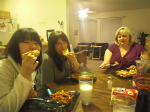この日の夕飯はアリアナがハンバーガーを作ってくれました。日本のものよりおいしかったです。すごくおいしいと伝えたら、アリアナはすごく喜んでいました。