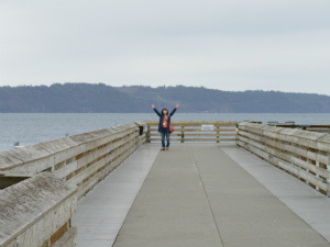 行きました。すごくいい天気で、海がきれいでした。フェリーに車ごと積んで、イスに座ってのんびりしたり、デッキに出て景色を眺めたりしました。風が強くて寒かったのですが、シアトルの町がとてもよくきれいに見えてよかったです。アリアナとスコットがキスしている写真を知らない男の人にとってと頼んで、撮ってもらっていたのが衝撃的でした。