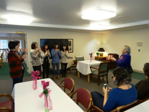 午後は老人ホームを訪問しました。 建物が高級ホテルのようでとても立派でした。そこで日本の童謡