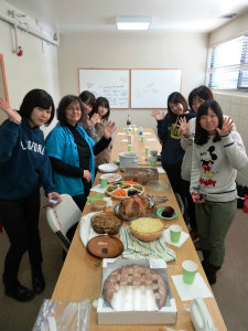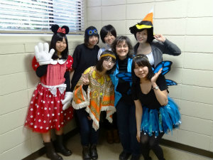 アメリカのホリデイを体験しました。それぞれ持ち寄った衣装に着替えて、様々な休日について学びました。お昼にはそれぞれのホストファミリーが用意してくれた料理を食べました。チキンやスイートポテトなど、おいしいものをたくさん食べることができました。