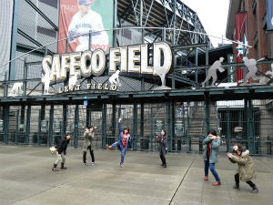 シアトル観光に行きました。まずワシントン大学に行き、学内を見学しました。とても広く、建物がいくつもありました。学食はレストランのようで、様々なお店がありました。また、ボウリング場やジムもあり、日本とは全然違うなあと思いました。その後はパイクプレイスマーケットでスターバックスコーヒーの1号店や名物の魚屋さんなどに行きました。また、ひったくりの現場にも遭遇してしまいました。セーフコフィールド