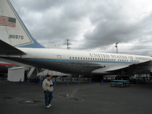Jimさんも一緒に4人で行きました。本当に広い博物館で、宇宙や飛行機に関する展示がたくさんありました。火星探索機や大統領専用飛行機などが印象的でした。子どもたちに混ざって戦闘機の模型に乗ってきました。ボーイング社の歴史を説明するコーナーもあり、昔の飛行機製造工程を再現していました。