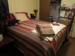 使わせてもらっていた部屋には、洋服棚やふかふかのベッドがありとても快適でした。また、今までにステイした青陵の先輩方や他の日本人の学生のフォトフレームがたくさん飾ってありました。シャワールームは家に2つあるうちの片方を1人で使わせてもらっていました