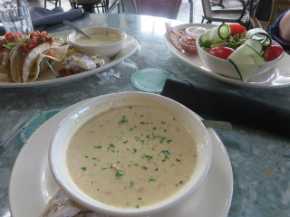 クラムチャウダーだけ食べました。ショッピングモールでは、Janeが無料券を使って