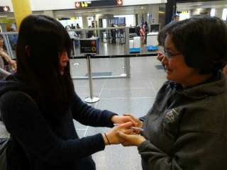 スタディセンターに着くと、もうみんなはいて、それぞれのホストファミリーともいろんなことを話していました。この日こそは泣かないで笑顔で別れようと思っていたけれど、最後にお別れのハグをする時涙が止まりませんでした。 Adam