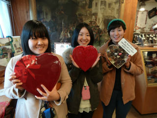 に行きました。バレンタインデーの前日だったため、とても混んでいました。かわいいチョコがたくさんあり、楽しかったです。その後、滝を見に行きました。とても大きな滝でびっくりしました。他にも大きなハンバーガーを食べたり、ショッピングモールにも行ったりもしました。