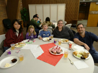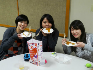 ご飯を食べた後、次の日スタディセンターに持って行くパンプキンパイを、Lin と