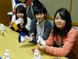 から、靴下を使ったスノーマンの作り方を教わり、みんなで作りました。過去にこのホームステイプログラムにホストファミリーとして参加していた女の子