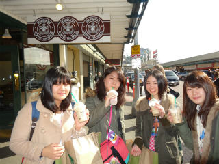 Marketに行き、有名なガムウォールを見たり、スタバ(STARBUCKS)の1号店に行ってフラペチーノを飲んだりしました。最後にマリナーズのSafeco