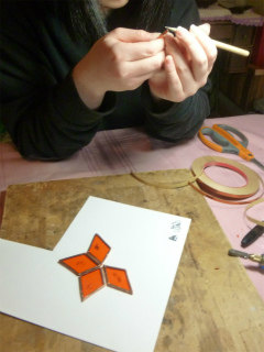 Gwenにステンドグラスの作り方を教えてもらいました。私は初心者に易しい星型のものを作りました。ガラスを切る作業は力がいるし、まっすぐ切るのが難しかったです。研磨機やはんだごて、ガラス同士をくっつける特別なテープを使いました。Gwenが「初めてにしては上手よ」と言ってくれたので、うれしかったです。2時間くらいで作り終わりました。次は違う形のステンドグラスにも挑戦してみたい思いました。