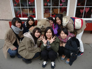 Bear"というお店でクマのぬいぐるみを全員でお揃いで買い、先生に驚かれました。