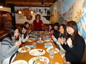 に行きました。行く途中バッファローという大きな動物が歩いていて、改めてここはアメリカなんだ、と日本との違いを実感しました。到着すると、ドイツ風の町全体がおしゃれで、シアトルとはまた違った雰囲気を楽しめました。外観だけでなく売っているものもおしゃれでかわいかったです。お昼にはみんなでドイツ料理のお店に行き、いろんな種類のソーセージやピクルスを食べました。初めて食べるような味のものもありましたが、赤いピクルス以外はおいしかったです。自分やホストファミリーへのお土産を買い、帰りました。