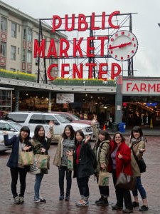 1日シアトル観光でした。この日はワシントン大学、スペースニードル、パイクプレイスマーケット、セーフコフィールドと盛りだくさんでした。ワシントン大学は日本の大学とは違いお城のようでした。静かにしなければいけない図書館で野中先生が踊りはじめ、みんな笑いをこらえるのが大変でした。その後、スペースニードルやパイクプレイスマーケットへ。スペースニードルには上りませんでしたが、店でポストカードや置物などお土産にぴったりなものを買うことができました