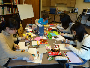 はとてもクラフトが得意です。とてもかわいいポストカードができ、ホストファミリーにあげる素敵なプレゼントになりました。