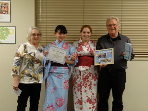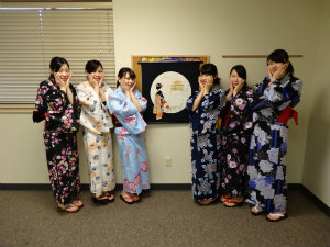 午前中にホストファミリーに渡すジャーナルやフォトフレーム、マグネットを完成させました。自分の納得のいくような形に仕上げられてよかったです。その後スタディセンターの近くのお店でランチをし、TARGETで最後の買い物を楽しみました。スタディセンターに戻り、浴衣に着替えプレゼンの用意、練習をしました。浴衣を着るときは、五十嵐副学長に教えてもらったことを思い出しながらみんなで助け合いました。きれいに浴衣を着ることができた