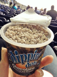 Cosette、Hunterとアイスホッケーの試合を観に行きました。ルールが分かりませんでしたが、とても迫力のある試合で面白かったです。ハーフタイムに食べたDippin' Dots