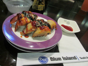 という近所のお寿司屋さんに行きました。握ってるのは全部メキシコ人でした。カルフォルニアロールの種類がたくさんあって、辛いものが多かったです。日本のにぎりのメニューは日本語で書いてありました。お寿司をメキシコ人が握ってるということに