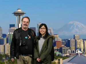 この日はGlenn と2人でシアトルに行きました。信号が青だと"Green, Green."