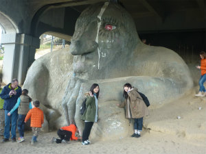 に行く途中に大きなトロール像がありました。周りに小さい子がたくさんいて、遊んでいました。その辺りにはあちこちに面白い像がありました。
