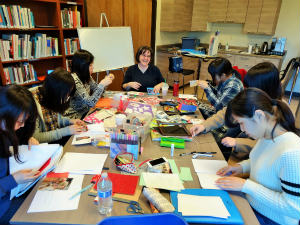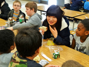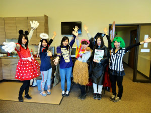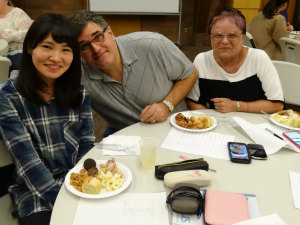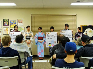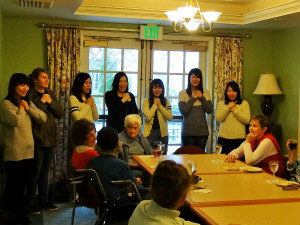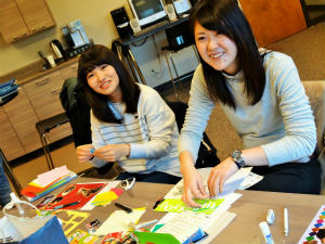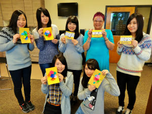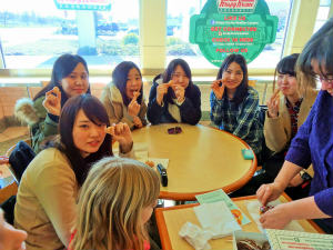 の車でスタディセンターに行きました。午前はそれぞれのホストファミリーとどういう風に過ごしているかなどを話したり、桃太郎の話の英訳をしたりしました。午後はグリーンリバーカレッジに行って昼食をとりながら半年留学中の3人と会いました。そのあとは大学内を見学して、老人ホームに行きました。老人ホームでは、スタディセンターで練習した「あめふり」と「ふるさと」をお年寄りの前で歌いました