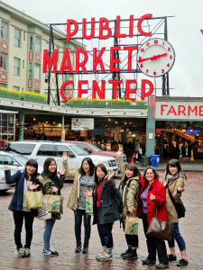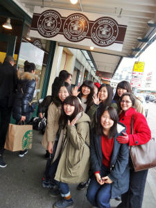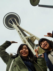1日シアトル観光で、8時に集合だったので6時半頃起きました。最初にワシントン大学に行きました。とても大きな大学で、図書館は映画に出てきそうなくらい広くて綺麗でした。そのあとはスペースニードルに行きましたが、天気があまり良くなかったのと料金が高かったので、上には登らず下で買い物をしました。次に街中を通るモノレールでショッピングモールに移動して昼食を食べました。1人ひとつずつ頼んだのですが、量が予想以上に多かったので残してしまいました…。それから、シアトルで一番の市場であるパイクプレイスマーケットや、スタバ1号店に移動して、各自でお土産を買ったりしました。そのあとはセーフコフィールドに行って野球用品がたくさん売られているお店を見て帰りました。Jane