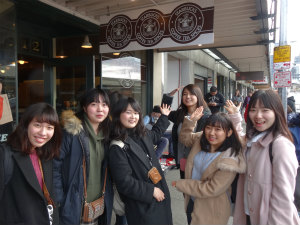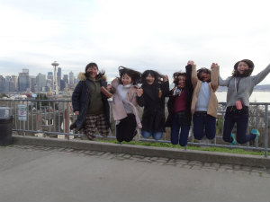 朝早くからシアトル観光に行きました。最初にワシントン大学に行きました。もう規模が違いすぎて圧倒されました。一つの建物が青陵大学全体よりも大きかった気がします。とにかく広すぎて歩くのが大変でした。その後行ったチョコレート・ファクトリーでは、またたくさんのチョコを買ってしまいました。さらに、パイク・プレイス・マーケットでみんなおそろいのシアトルTシャツを買い、有名なスターバックス1号店にも行きました。他にもいろいろなお店がたくさんあり、それぞれペアになって買い物を楽しみました。次はいよいよスペースニードル! この日は珍しく雨も降ってなくていい天気だから、上に登ることができると楽しみにしていたけれど、この日は貸し切りで閉まっているため、上ることができなくてすごくショックでした。その後に行った公園での景色がとてもきれいでした。