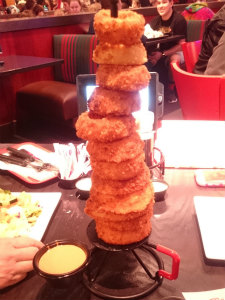 放課後は Jane の妹さんのマーギーと、私がリクエストしたでっかいハンバーガーを食べに行きました。マーギーはとても優しくて、ゆっくりと分かるように話しかけてくれたのですぐに仲良くなることができました。オニオンリングのタワーの高さに驚きましたが、ハンバーガーもとてもおいしかったです。