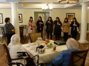 この日ははじめに Green River College へ行きました。留学中のなおことまりあちゃんに会いました。その後は、シニアセンターへ行きました。すごくきれいで高級なホテルみたいでした。ここで、「あめふり」と「ふるさと」を歌いました。英語バージョンと、日本語バージョンを披露しました。
