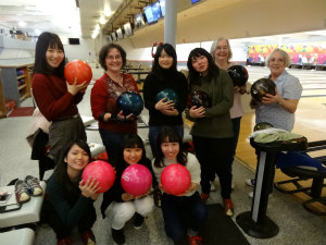 午前は、トランプをしました。ゴーフィッシュとソリティア、ババ抜きをしました。午後は、ボウリング場に行きました。Laura の他に、私のホストマザーの Gwen やかこりんのホストマザーのMary、もえぴのホストファーザーの Dana も来てくれました。Laura や Gwen は毎週月曜日に、ボウリング場へ行っているので、とても上手でした。私はボウリングが苦手だったのですが、 Laura や Gwen が教えてくれたので少し上達した気がします。とても楽しかったです。